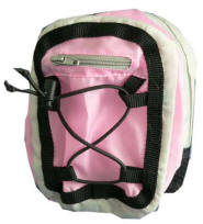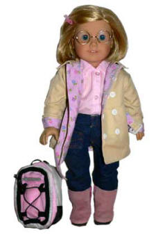 This adorable pink and gray Bungee Backpack is one of the cutest items for your American Girl doll. Accessories like this are just what your doll needs! Made to carry all her school books, it has 2 zippers and 2 side mesh pockets, and it is very roomy! |
