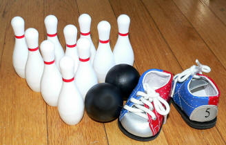 Bowling Set w/Shoes This is a fun set. It includes a pair of cool bowling shoes with the number 5 on the back and multiple colors on the shoes (just like the real ones). A plastic black bowling ball and 10 white plastic pins complete the set. This makes a great gift for anyone with an 18 inch doll (boy or girl). |
